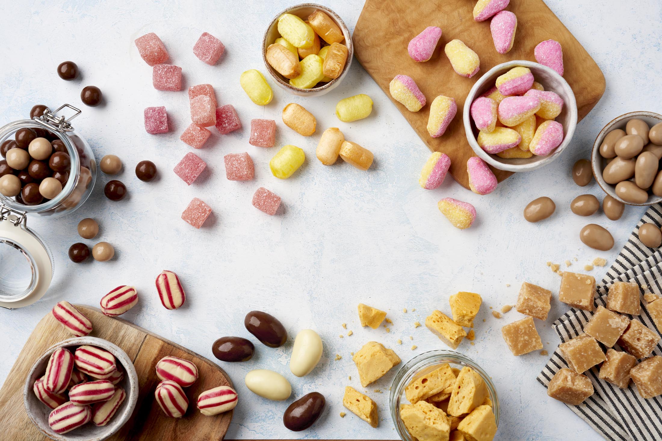 As well as traditional hard-boiled sweets, premium fudges and honeycomb, we also handle a wide range of chocolates and can create spectacular bespoke products ideal for the gifting market.